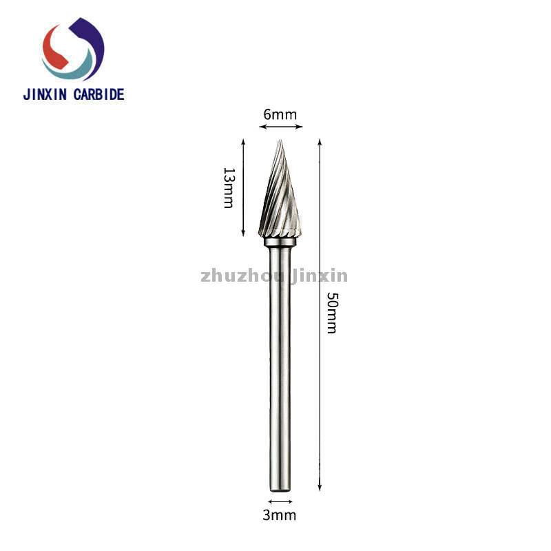 La pointe effilée est la forme la plus typique de la lime rotative de type M. Cette forme permet à la lime d'atteindre les espaces restreints, les rainures en V, les rainures en queue d'aronde, les rainures de clavette et autres contours complexes pour la coupe, le meulage, l'ébavurage, etc., et convient à l'usinage fin et au contourage des pièces.